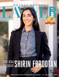 This year's Judges' Night & Annual Meeting will be held on Thursday, Jan. 22, 2026 at the Irvine Marriott. This time-honored event recognizing Orange County judiciary will feature the installation of Shirin Forootan as 2026 OCBA President, as well as the installation of the OCBA Officers and Directors and the OCBA Charitable Fund Directors. A highlight of the evening will be the presentation of the Franklin G. West Award, the highest honor bestowed by the OCBA to Mark P. Robinson, Jr. (Ret.).